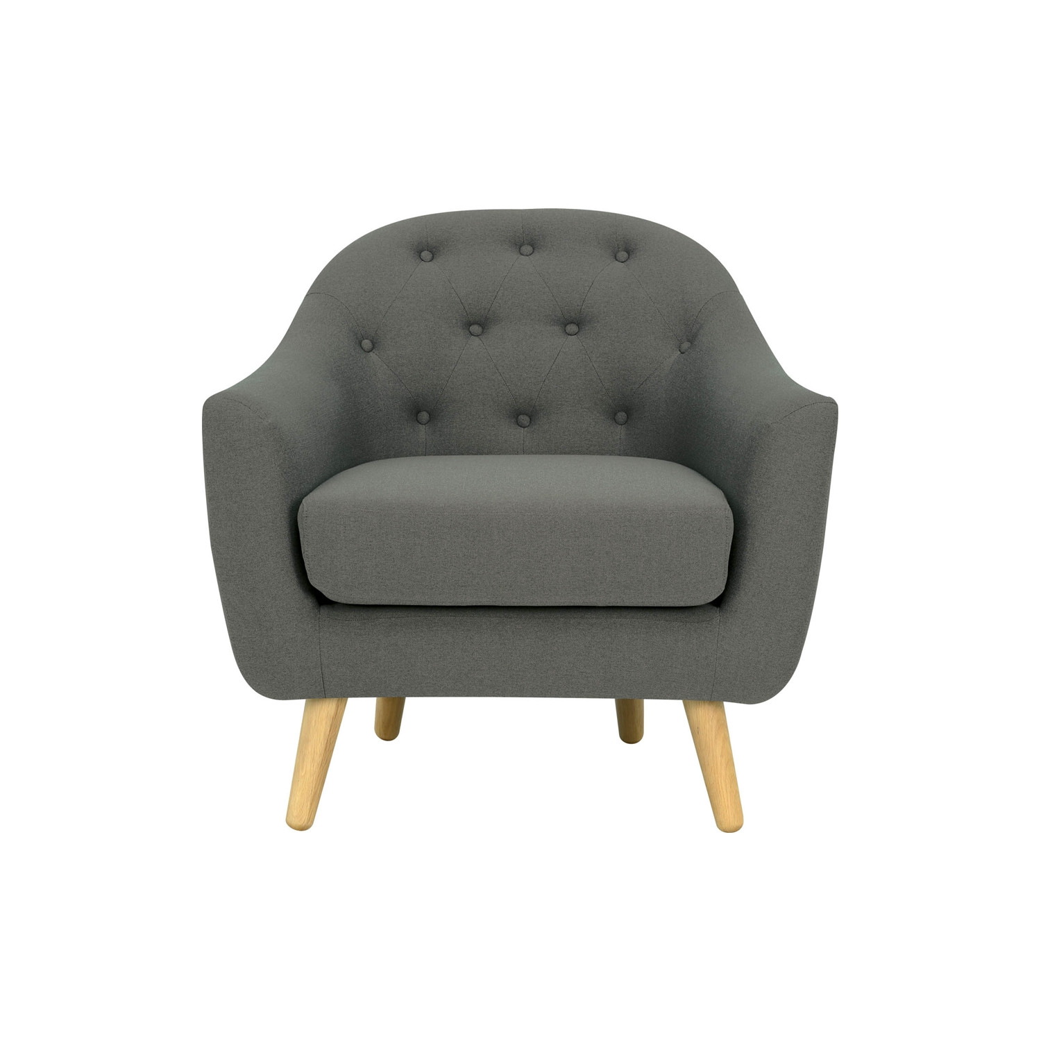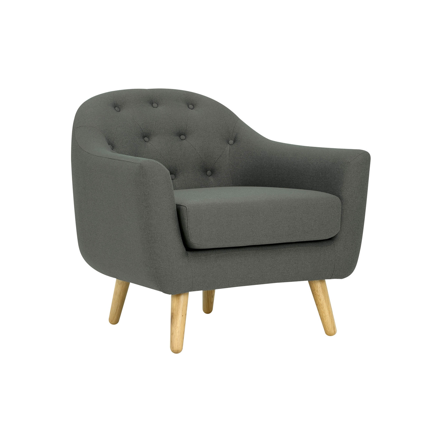 Senku single seater sofa with Oak leg, Grey colour body & button in Burrel fabric